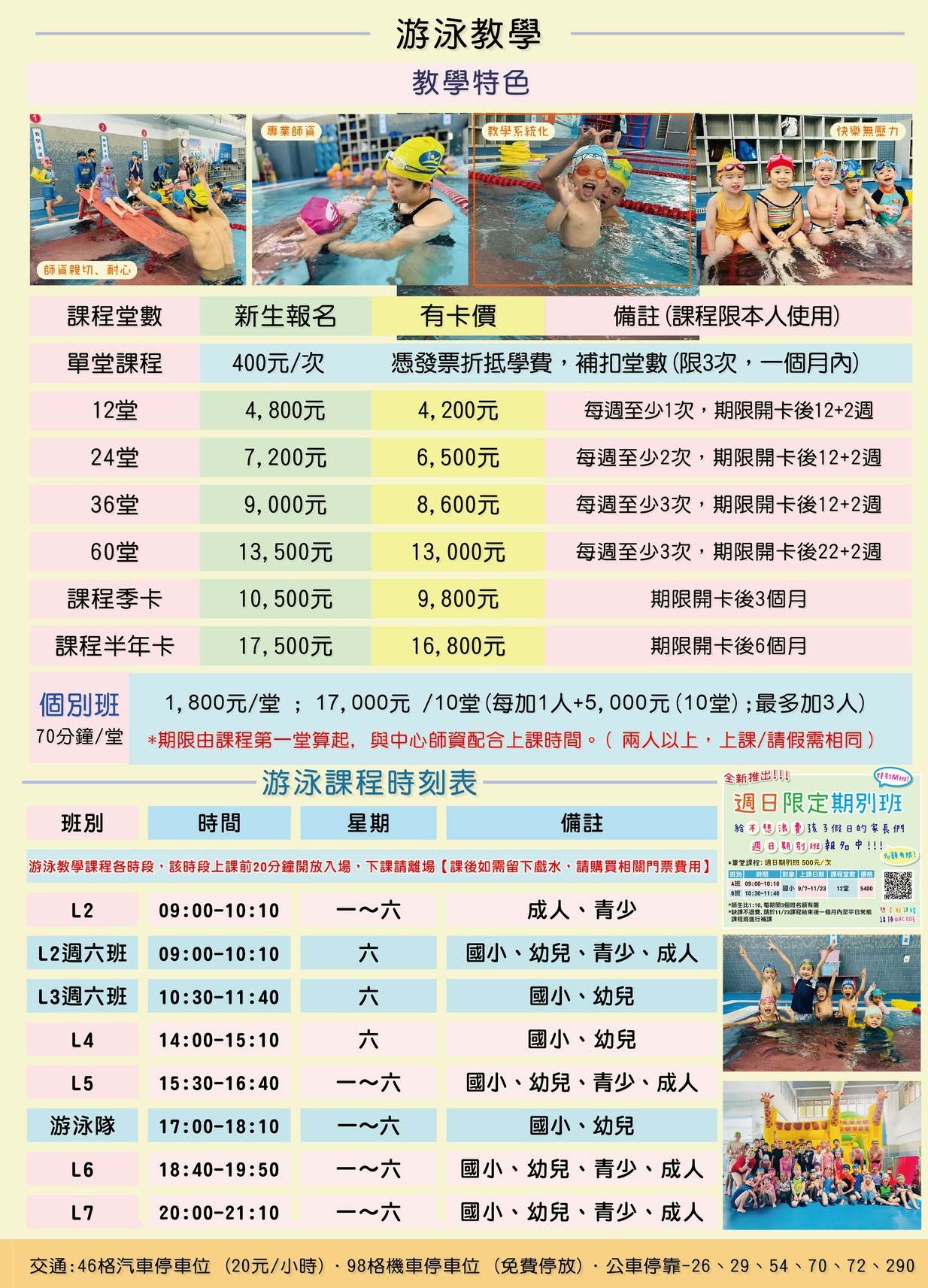 • 專屬十五公尺教學游泳池,讓學習游泳的學員可以有一個安全及安心的場地可以練習。